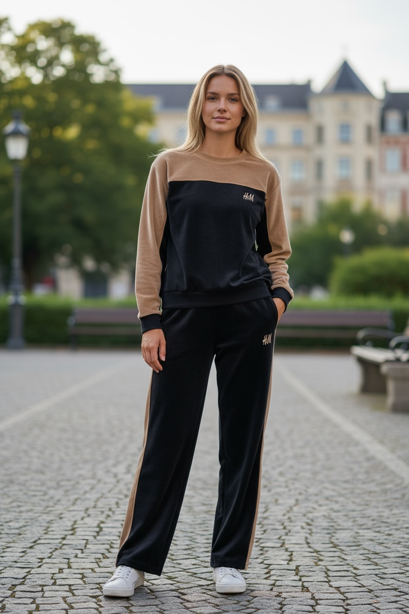 Women’s Two-Tone Sweatshirt & Jogger Set – Navy & Beige