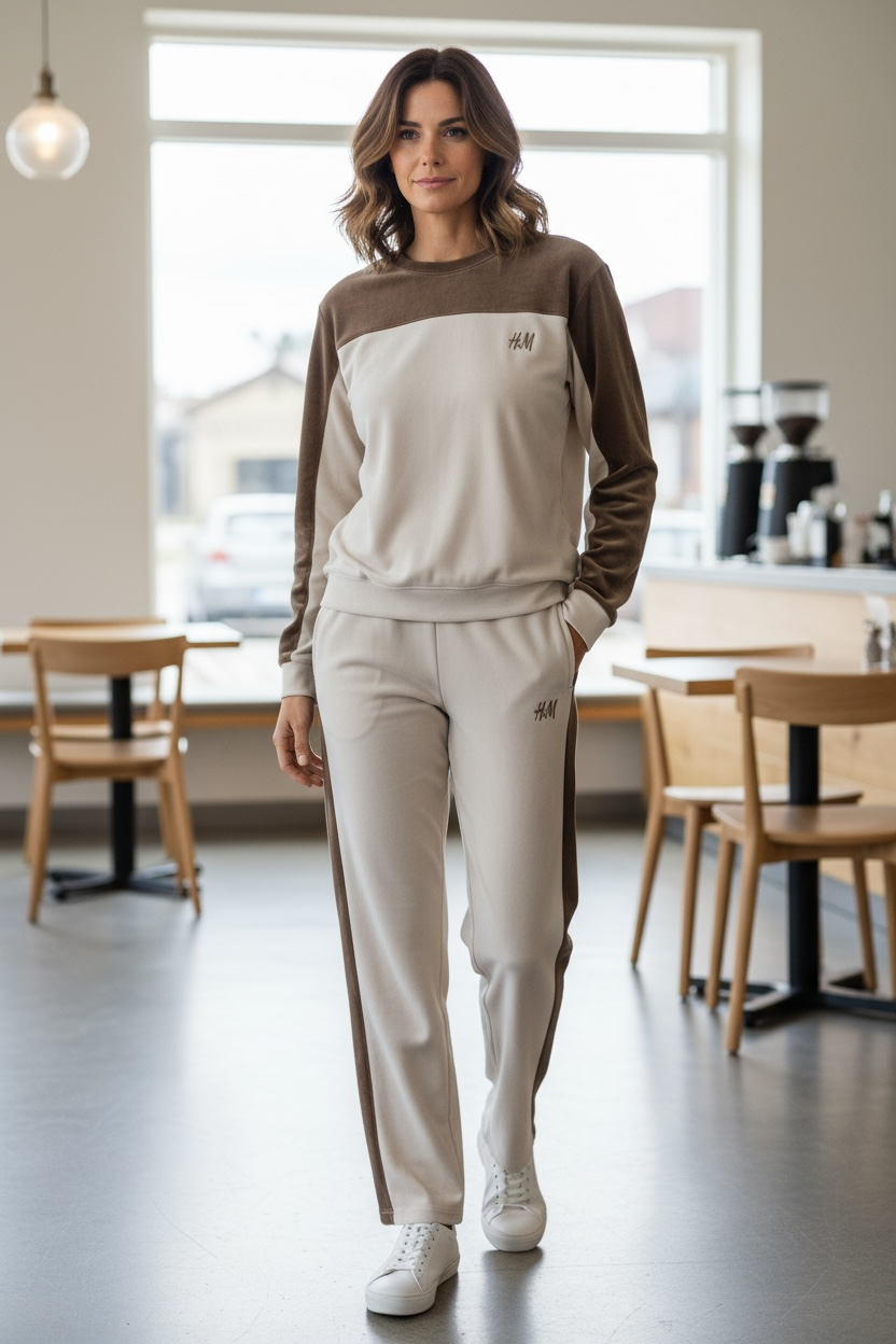 Elevate your casualwear with this women’s white and brown panel sweatshirt & jogger set. Made from a soft polyester blend, this modern two-tone set combines comfort with chic streetwear style. The crew-neck sweatshirt features a contrast panel design, paired with matching joggers for a coordinated look – perfect for lounging, casual days, or travel.